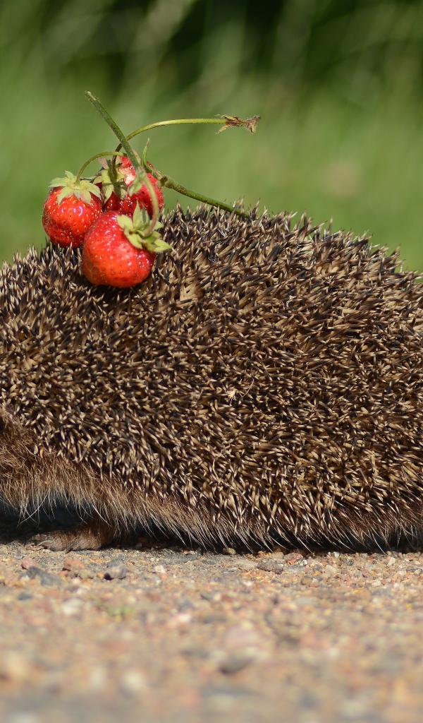 Wallpaper Spiny hedgehog with cherries on needles