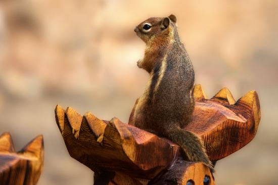 » Wallpaper Chipmunk sits on a wooden sculpture