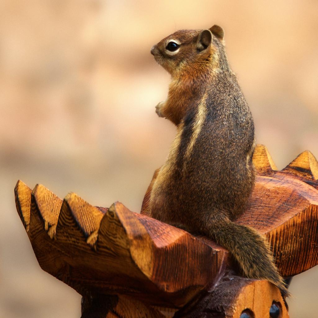 » Wallpaper Chipmunk sits on a wooden sculpture