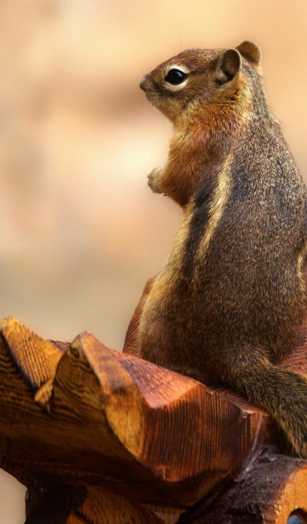 » Wallpaper Chipmunk sits on a wooden sculpture