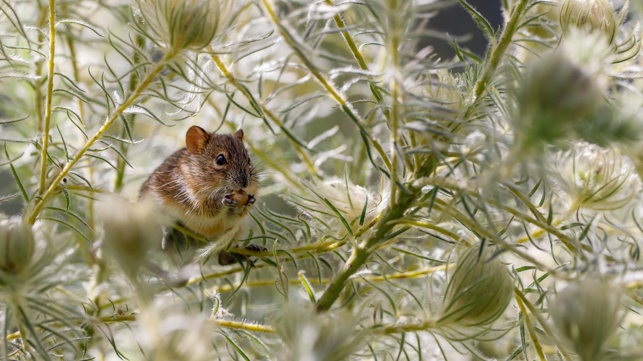 Wallpaper Beautiful blue-eyed cat is sitting on the green grass in green leaves.