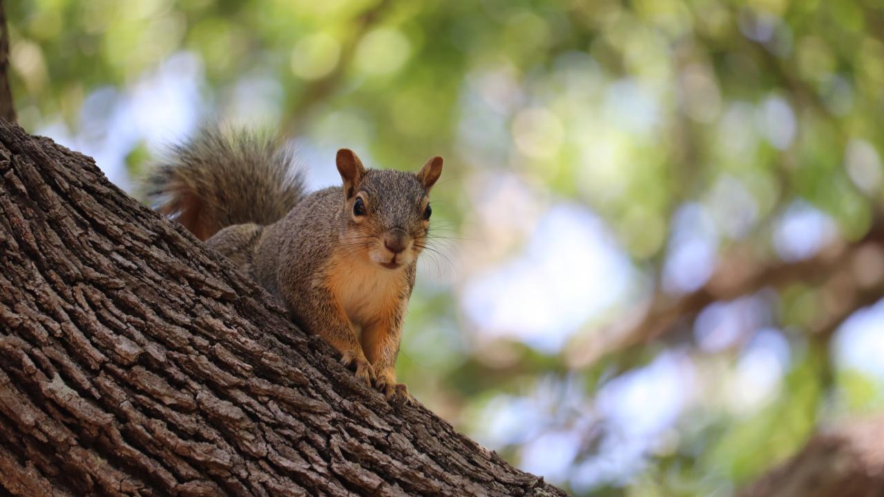 Wallpaper Funny fast red squirrel sitting on a tree