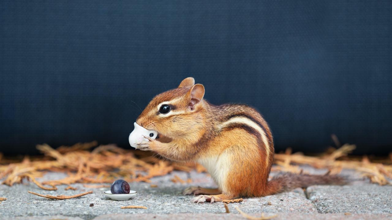 Wallpaper Little chipmunk tastes treats