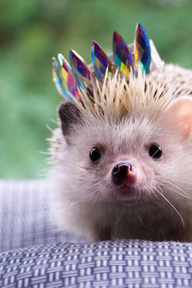 Wallpaper Funny hedgehog with a crown on the bedspread