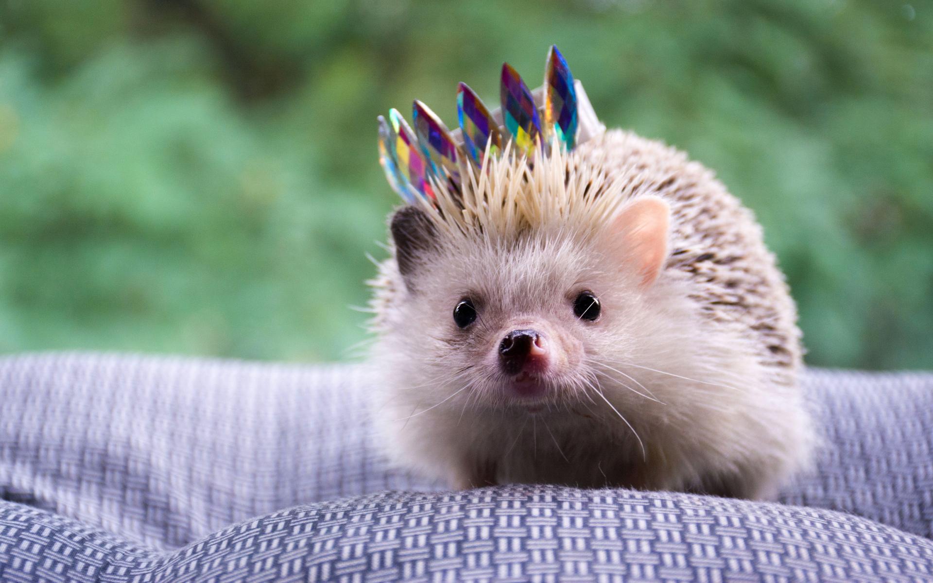 Wallpaper Funny hedgehog with a crown on the bedspread