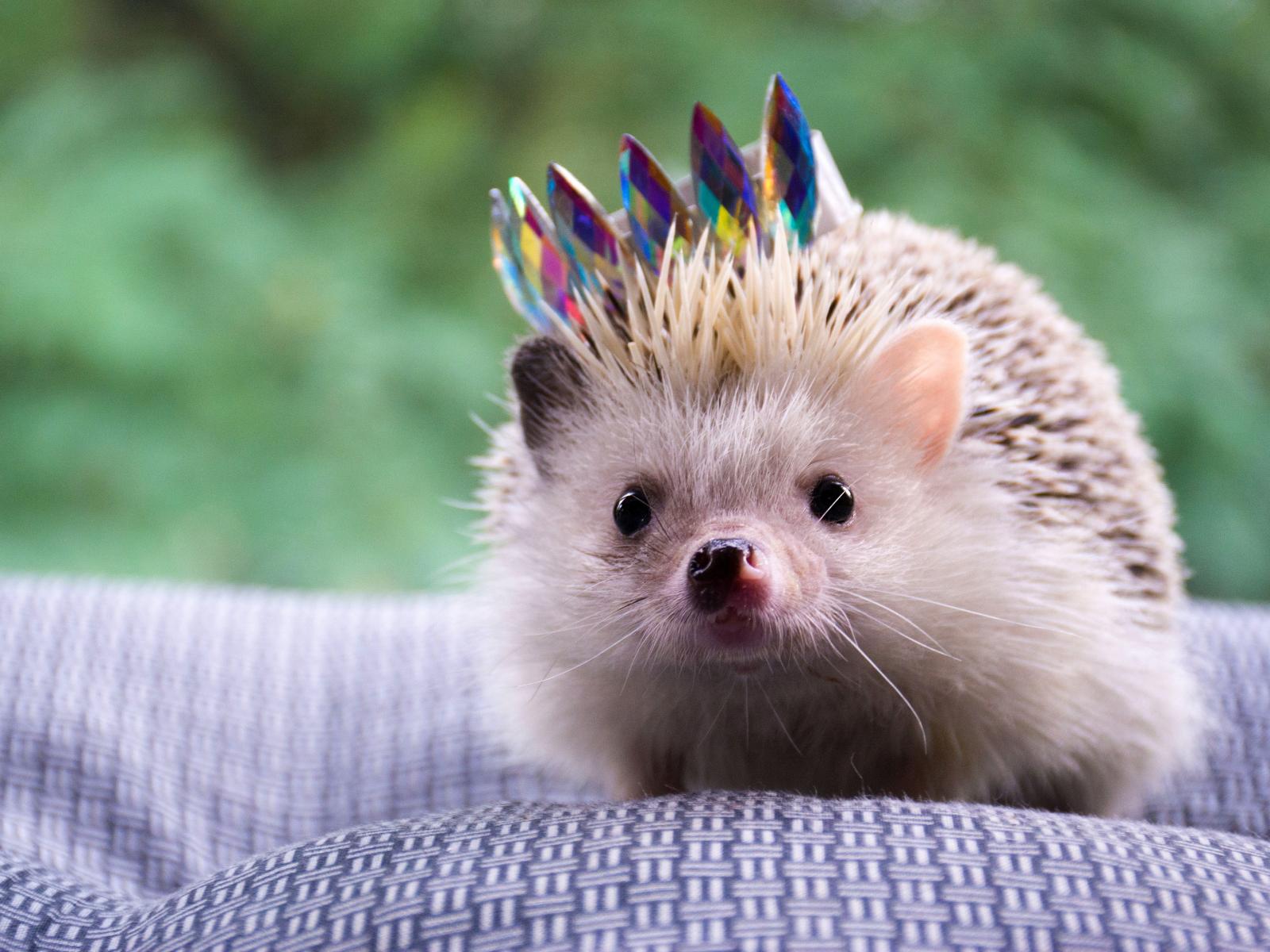 Wallpaper Funny hedgehog with a crown on the bedspread