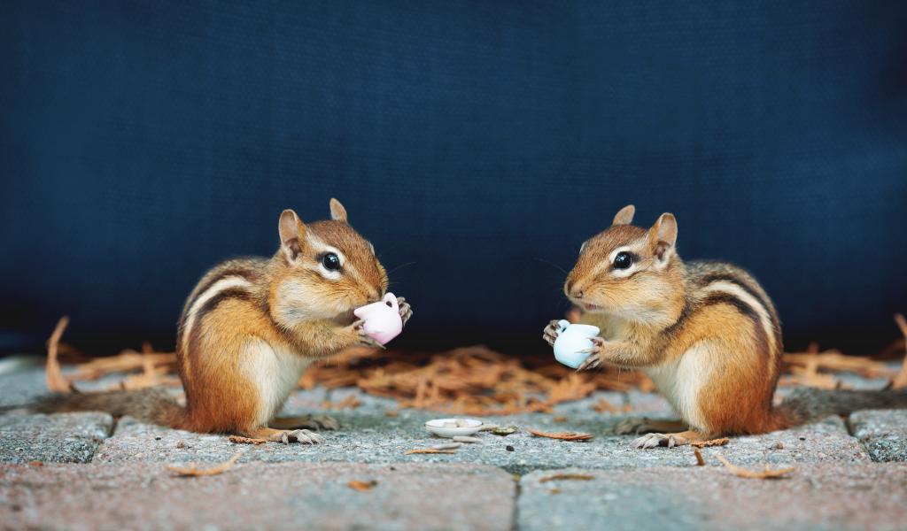 Wallpaper Two little chipmunks are sitting on a dry tree