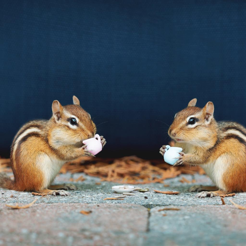 Wallpaper Two little chipmunks are sitting on a dry tree