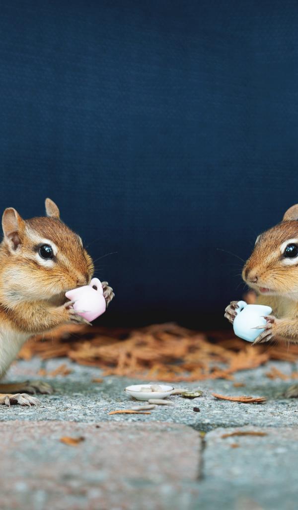 Wallpaper Two little chipmunks with cups