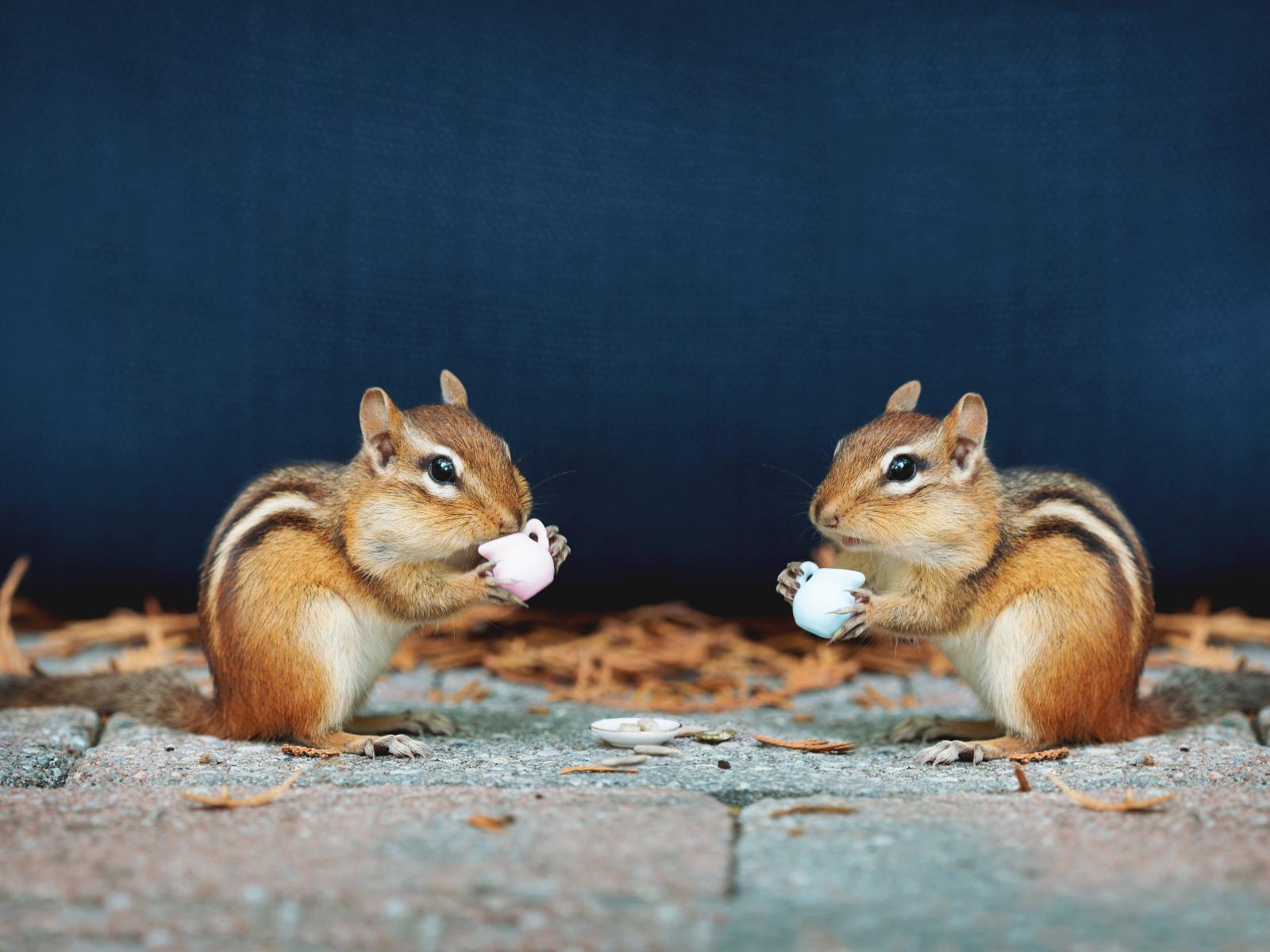 Wallpaper Two little chipmunks are sitting on a dry tree