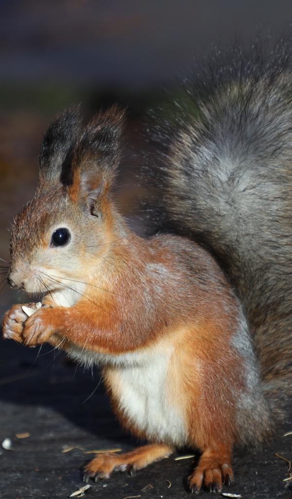 Wallpaper Beautiful red squirrel gnaws a nut on a tree