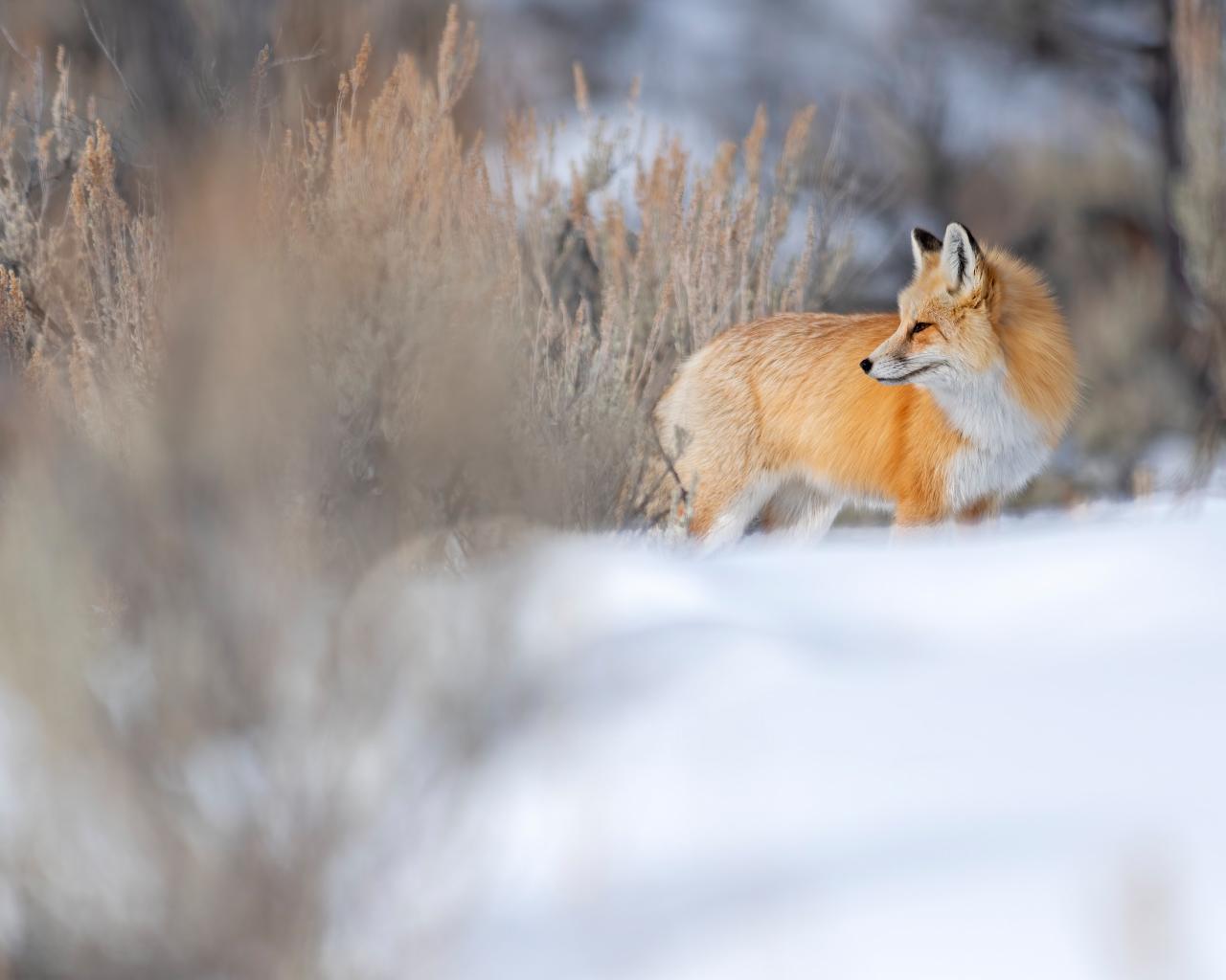 Wallpaper Fluffy gray cat sits in the snow in winter