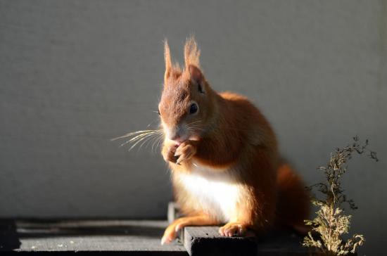 Wallpaper Red squirrel in the rays of the sun on a gray background