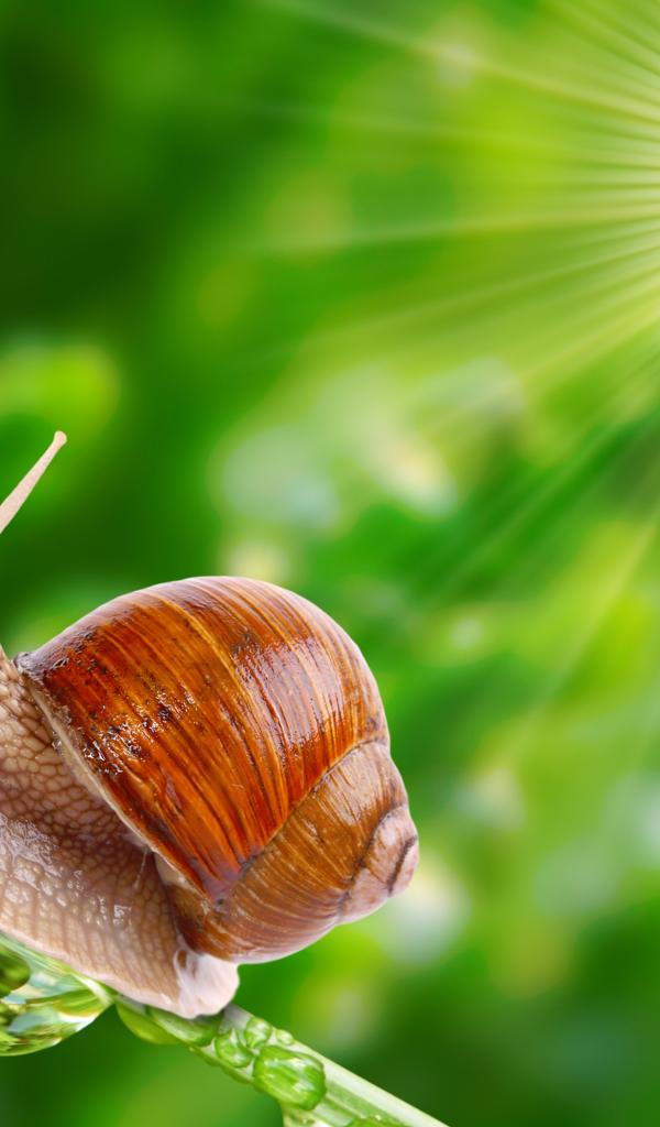 Wallpaper Snail in the sun on a blade of grass