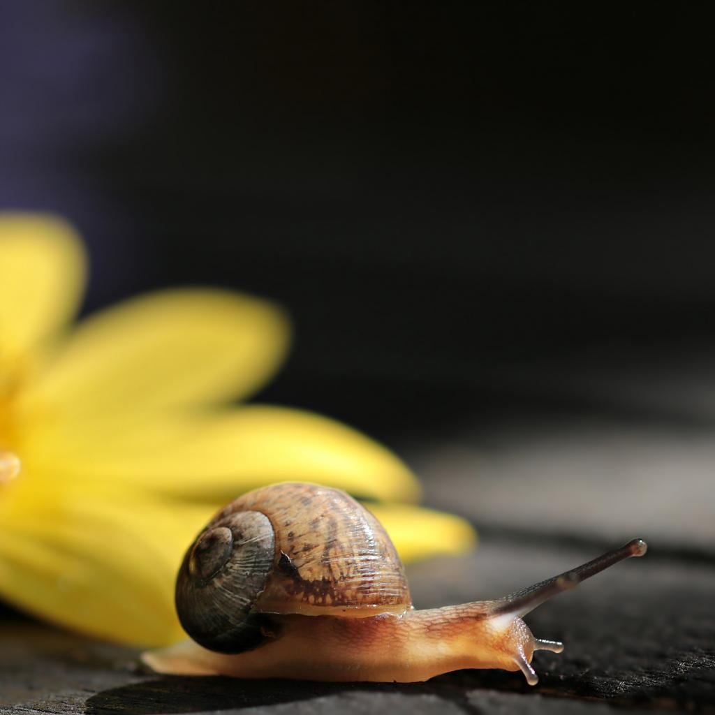 Wallpaper Snail with yellow flower on the table