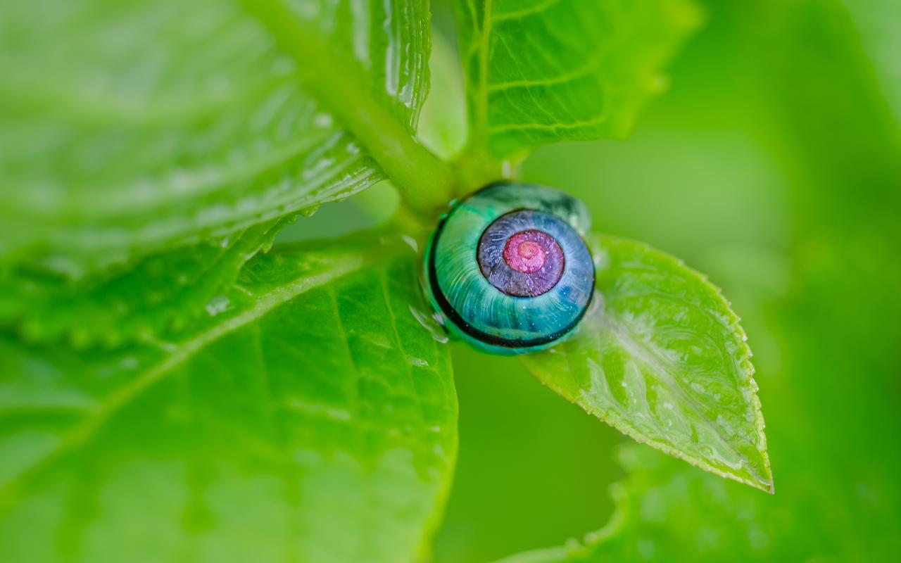 Wallpaper Blue seashell on green leaf