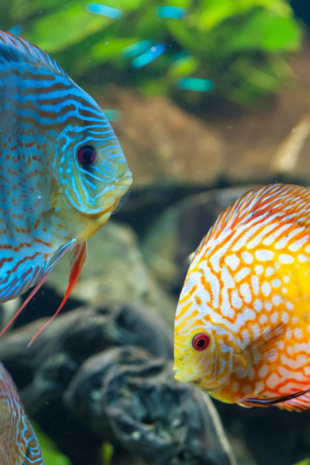 Wallpaper Blue and orange fish with white spots in the aquarium