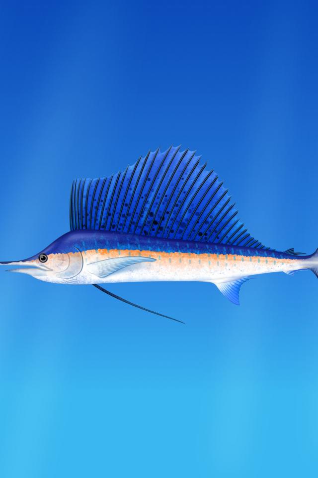 Wallpaper Marine fish marlin on a blue background