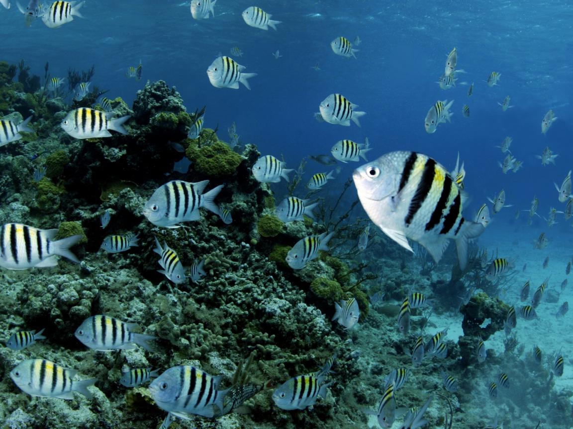 Wallpaper Striped fish in water