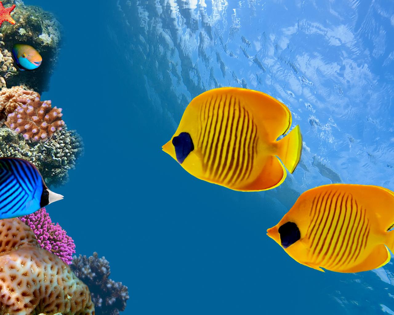 Wallpaper Marine multicolored butterfly fish in water