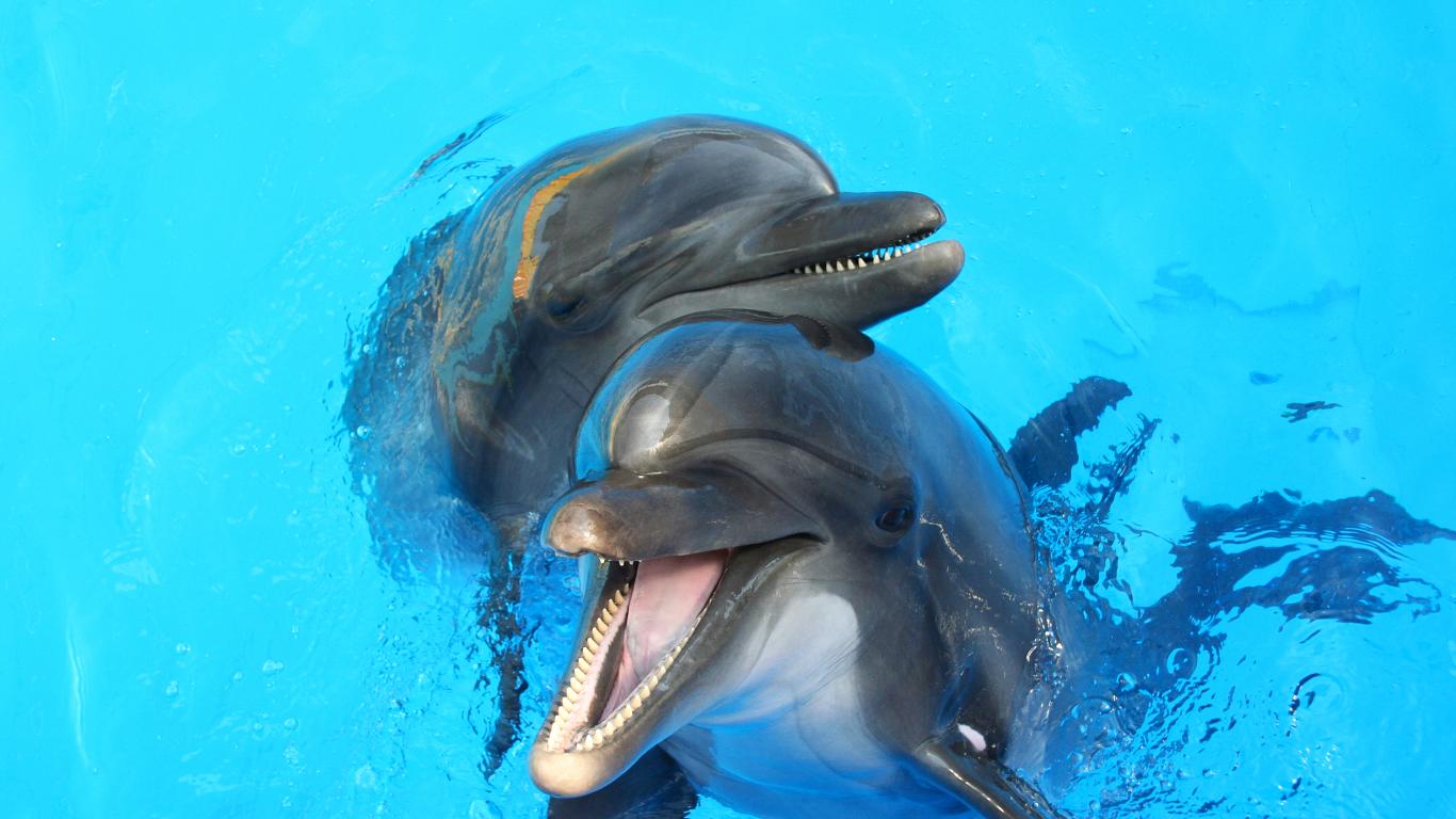 » Wallpaper Two dolphins in blue water