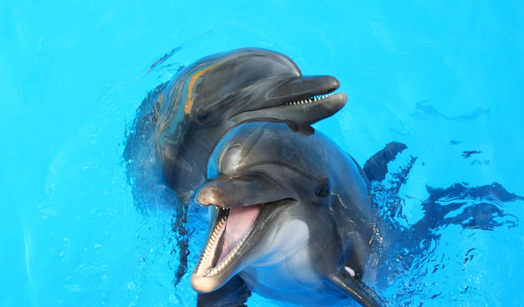 » Wallpaper Two dolphins in blue water