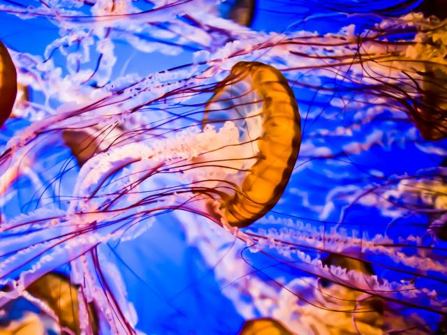 Wallpaper Multicolored jellyfish under water close-up