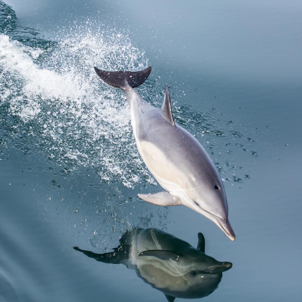 Wallpaper The dolphin jumping is reflected in the water