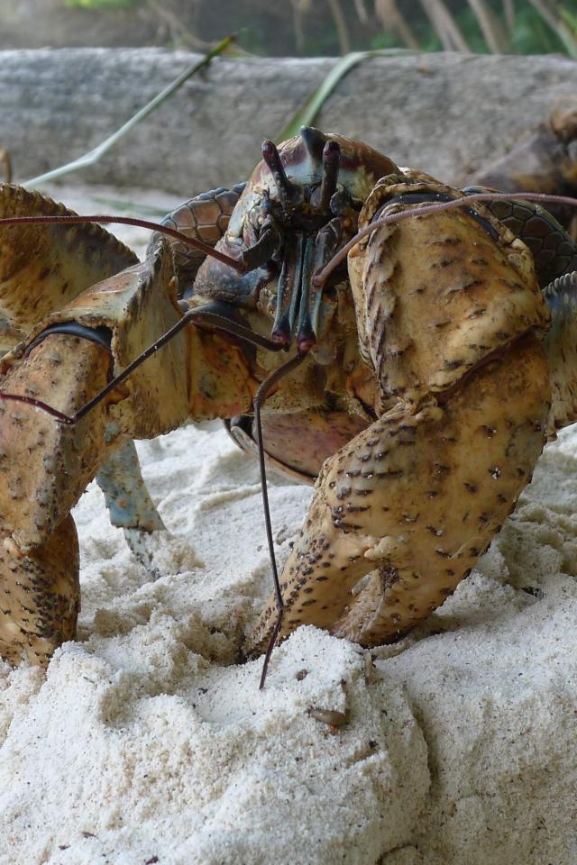 Wallpaper Big crab on the sand close up
