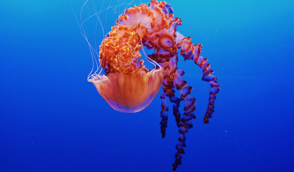 Wallpaper Beautiful multi-colored jellyfish on a blue background
