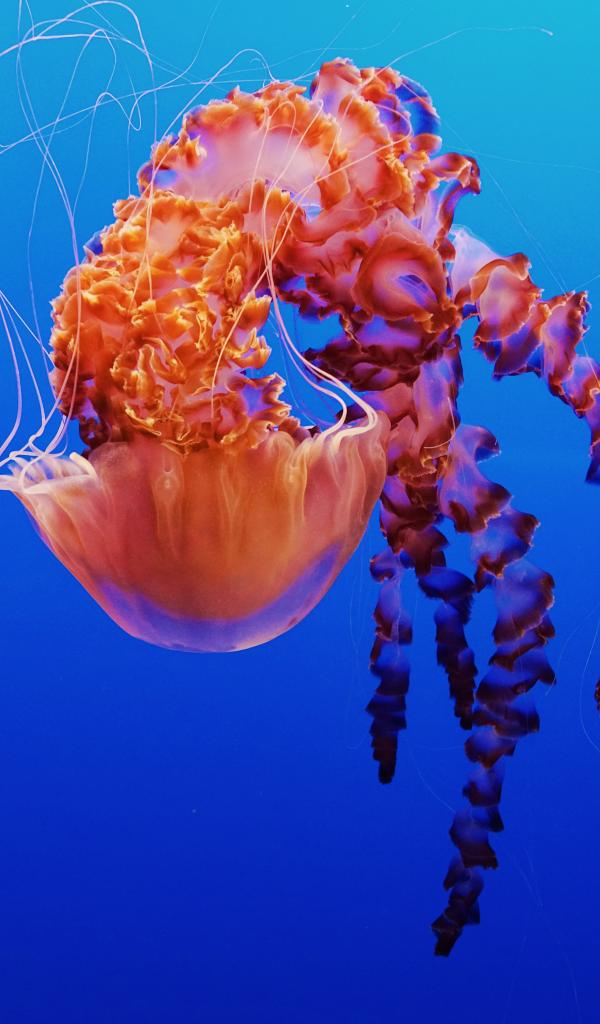 Wallpaper Beautiful multi-colored jellyfish on a blue background