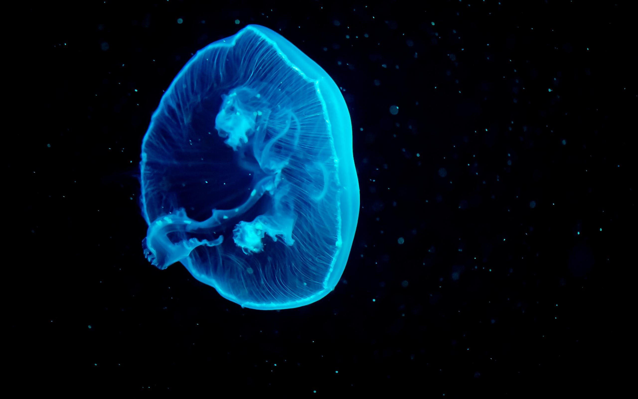 Wallpaper Blue jellyfish on a black background