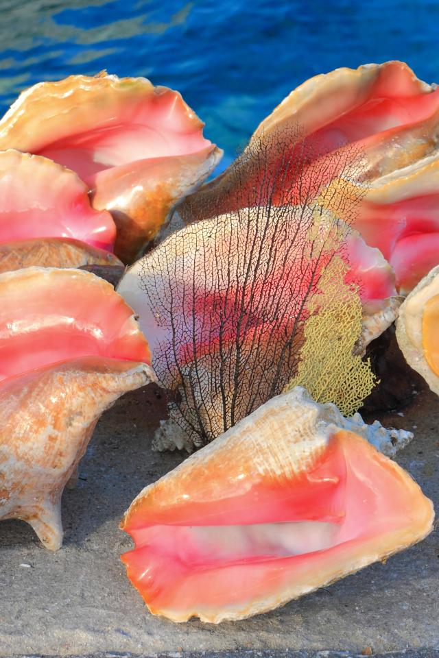 » Wallpaper Big pink seashells on sand
