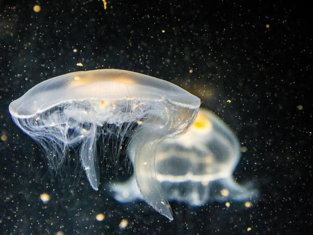 Wallpaper Large white jellyfish in water on a black background