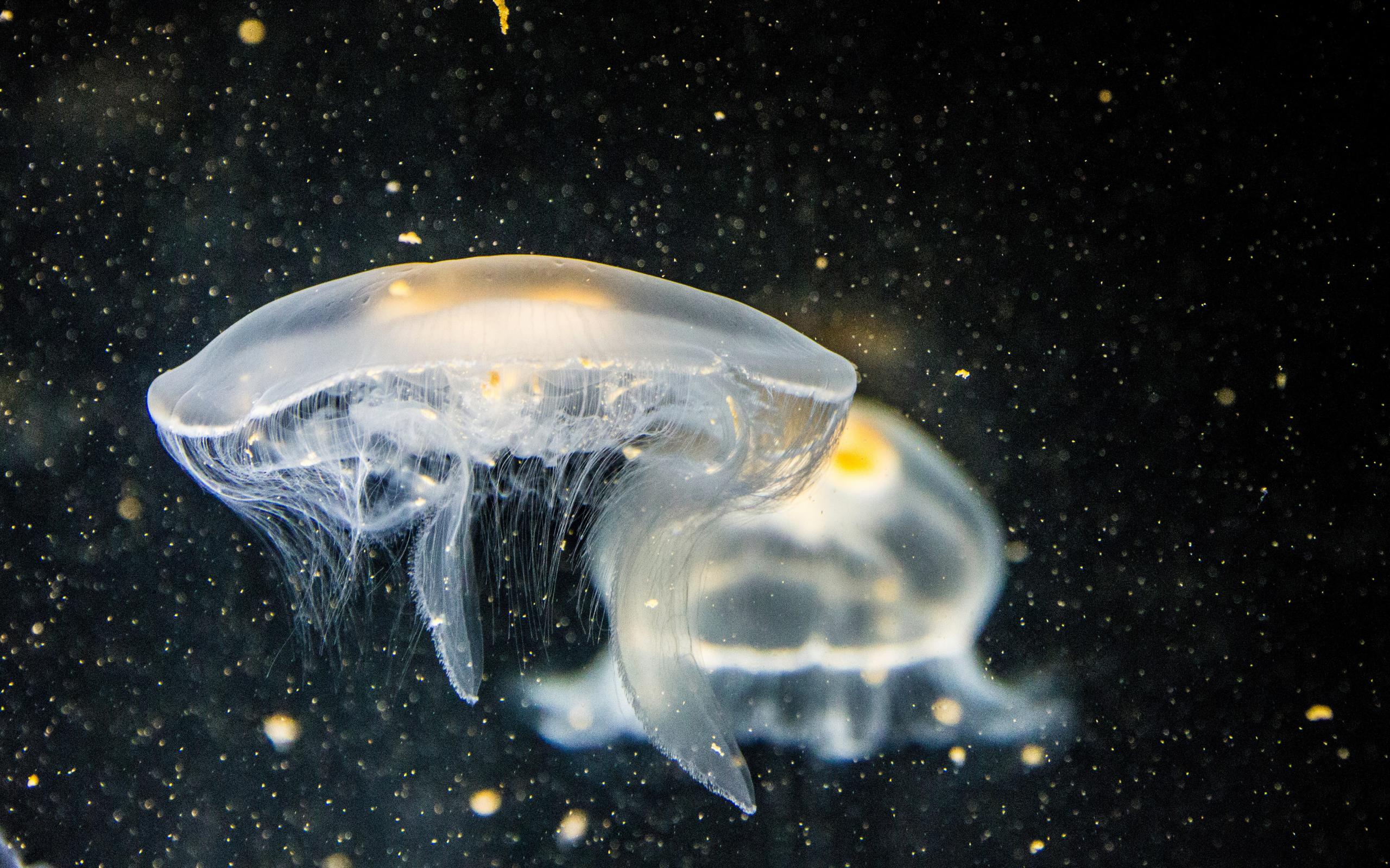 Wallpaper Large white jellyfish in water on a black background