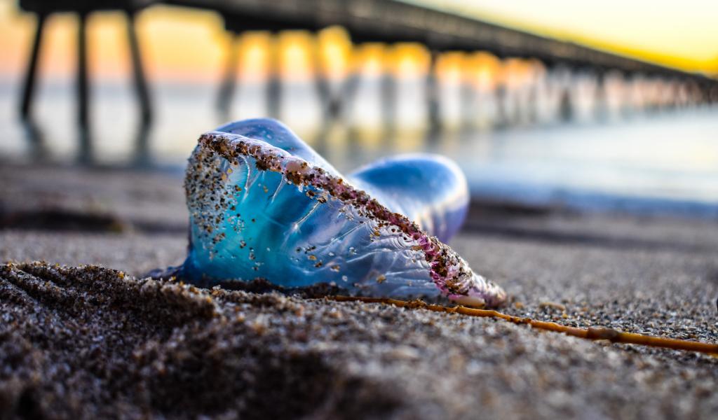 Wallpaper Blue jellyfish lies on the sand by the sea