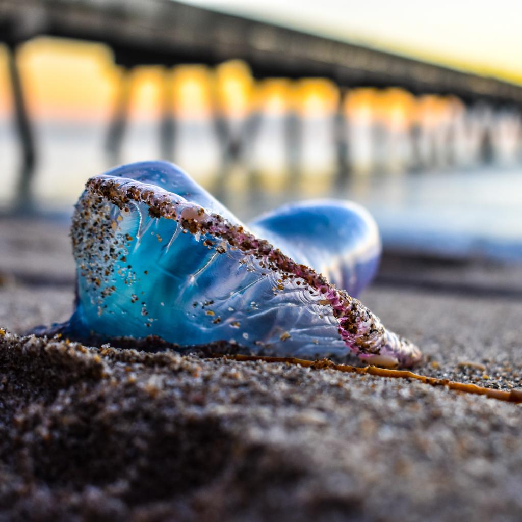 Wallpaper Blue jellyfish lies on the sand by the sea