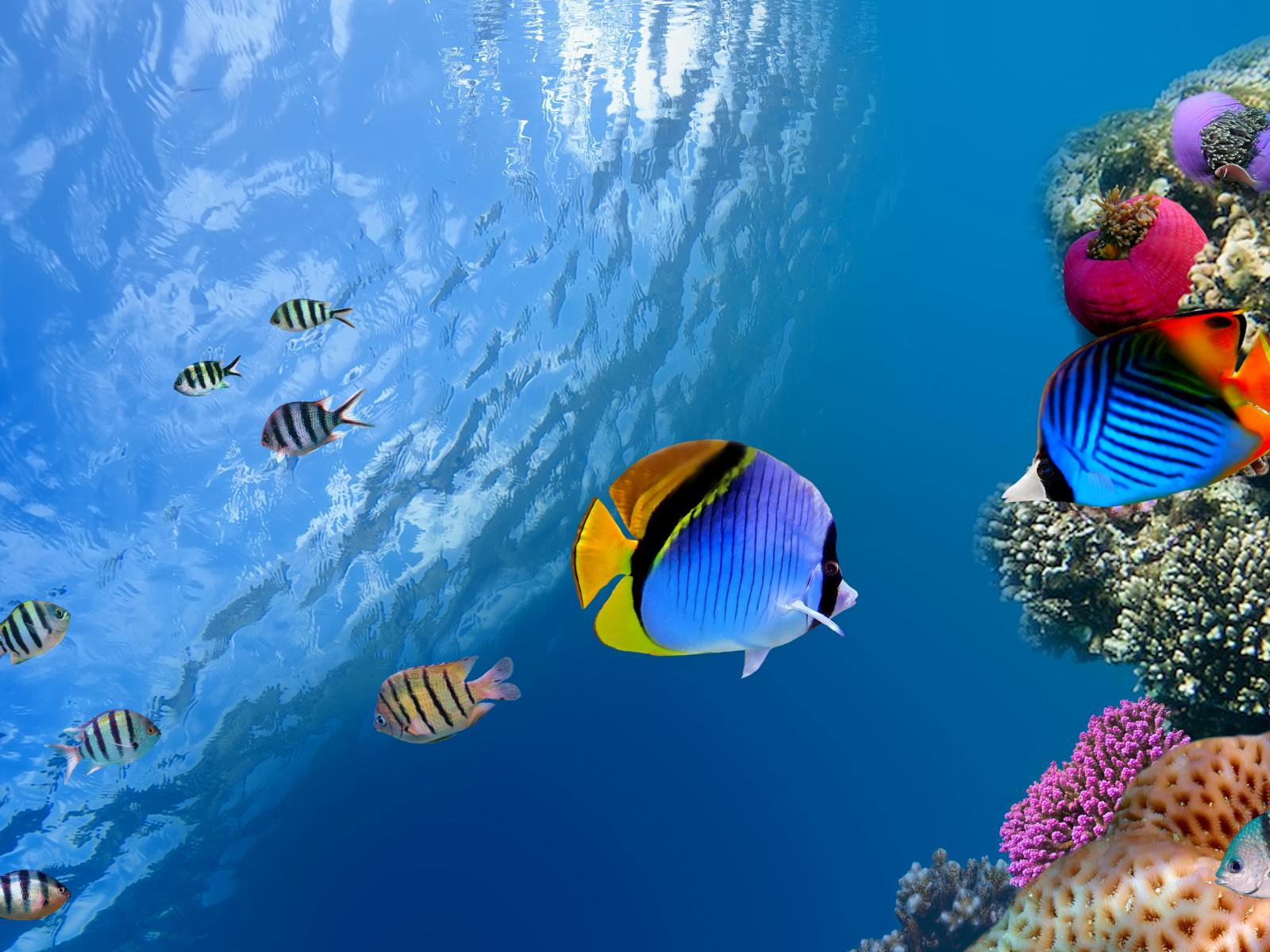Wallpaper Colorful fish and corals underwater in the ocean