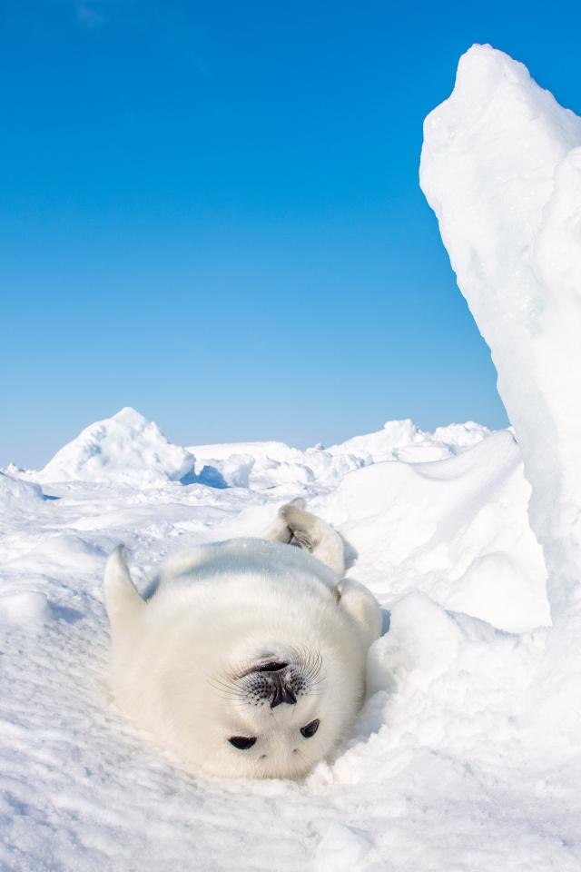Wallpaper White cub seal lies in the snow