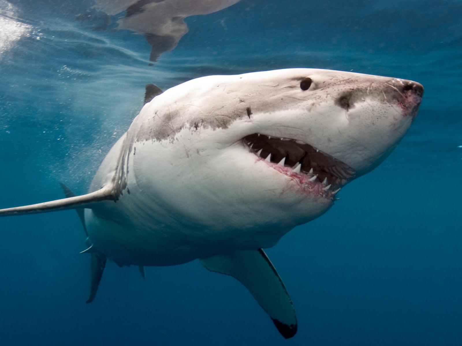 Wallpaper Great predatory shark with sharp teeth in the water