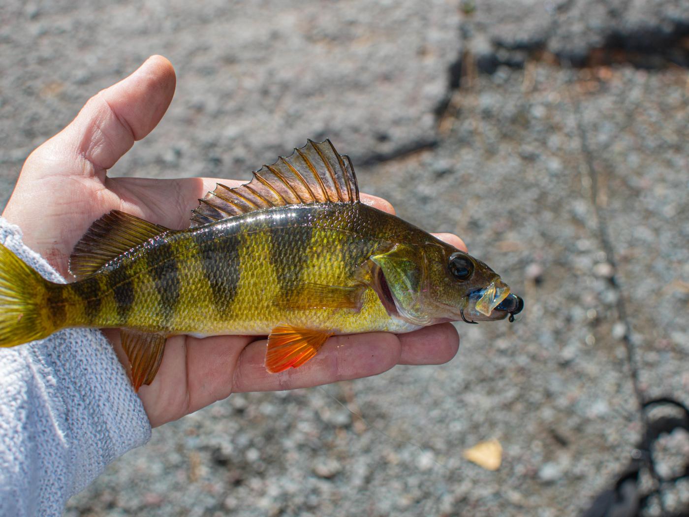 » Wallpaper Fish ruff on the fisherman`s hand