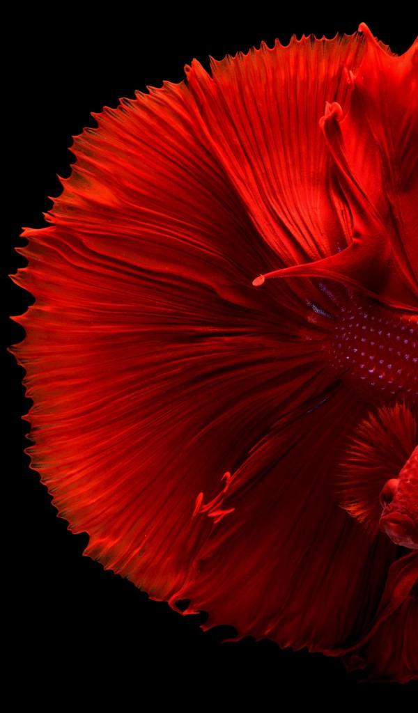 Wallpaper Red fish cockerel on black background