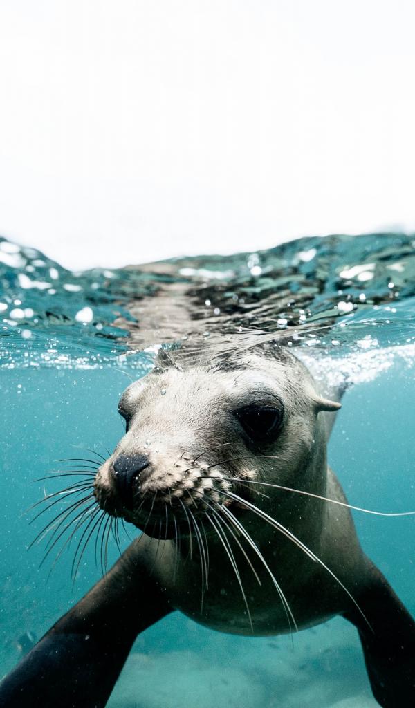 Wallpaper Fur seal swims underwater