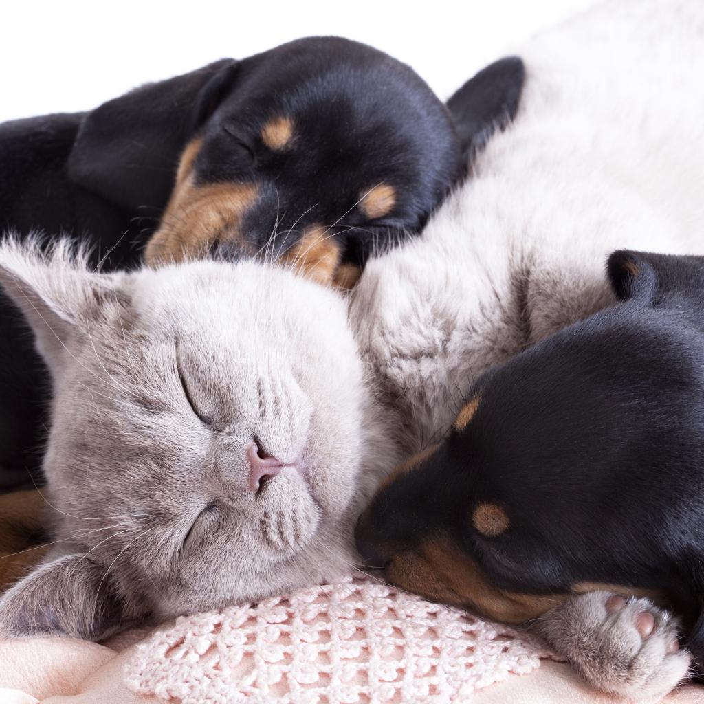 Wallpaper Small sleeping puppies and a kitten