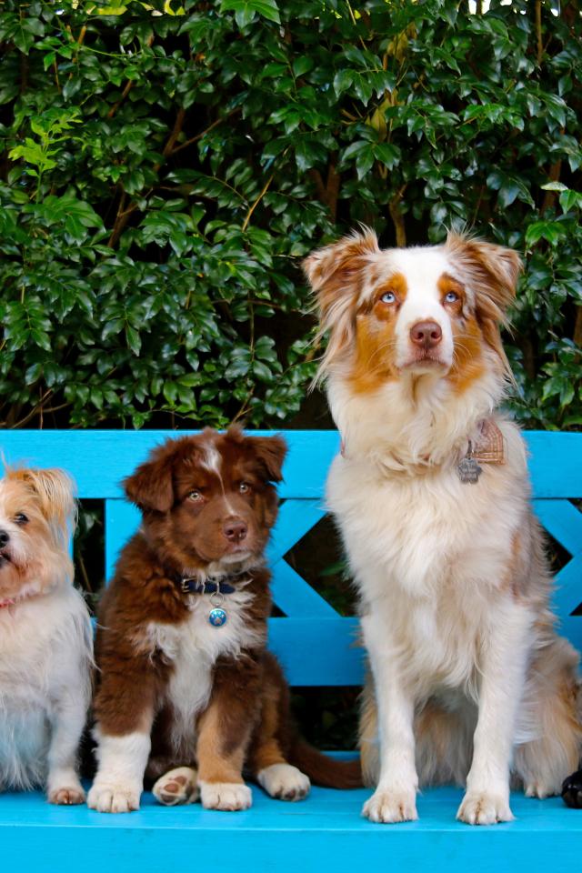 Wallpaper Lovely dog and cat on the bench