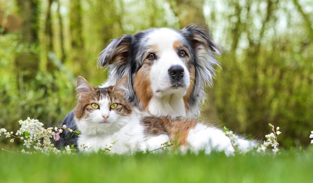 Wallpaper Beautiful blue-eyed cat is sitting on the green grass in green leaves.