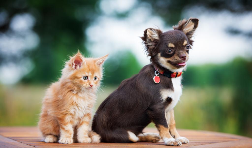 Wallpaper Chihuahua puppy with a small red kitten