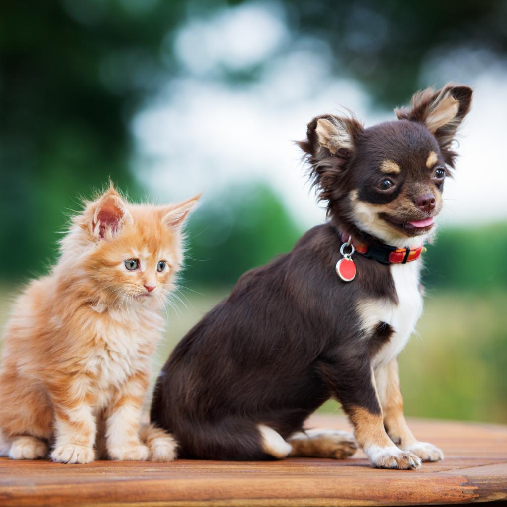 Wallpaper Chihuahua puppy with a small red kitten
