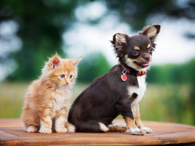 Wallpaper Chihuahua puppy with a small red kitten