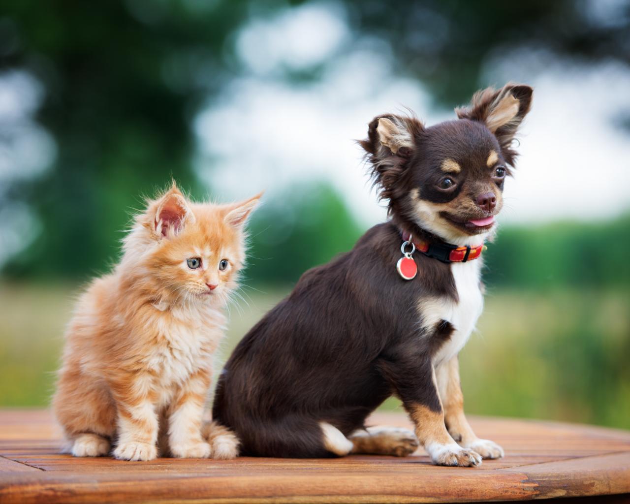 Wallpaper Chihuahua puppy with a small red kitten